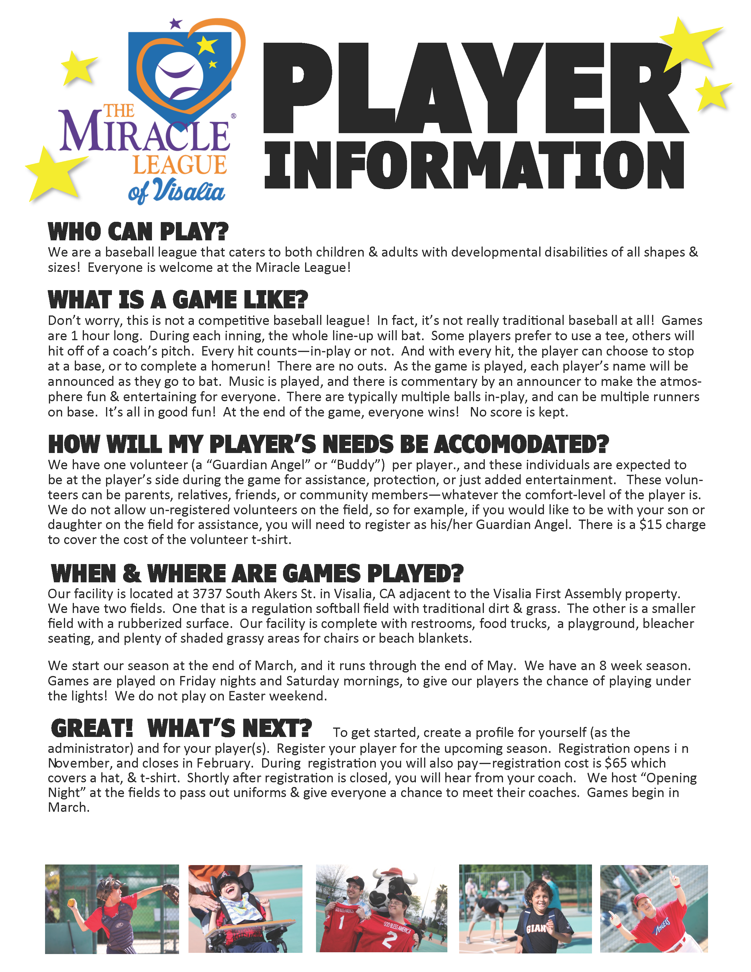 Copyright © 2025 Miracle League of Visalia  |  Privacy Policy |  Terms of Use  |  License Agreement |  Children's Privacy Policy |
